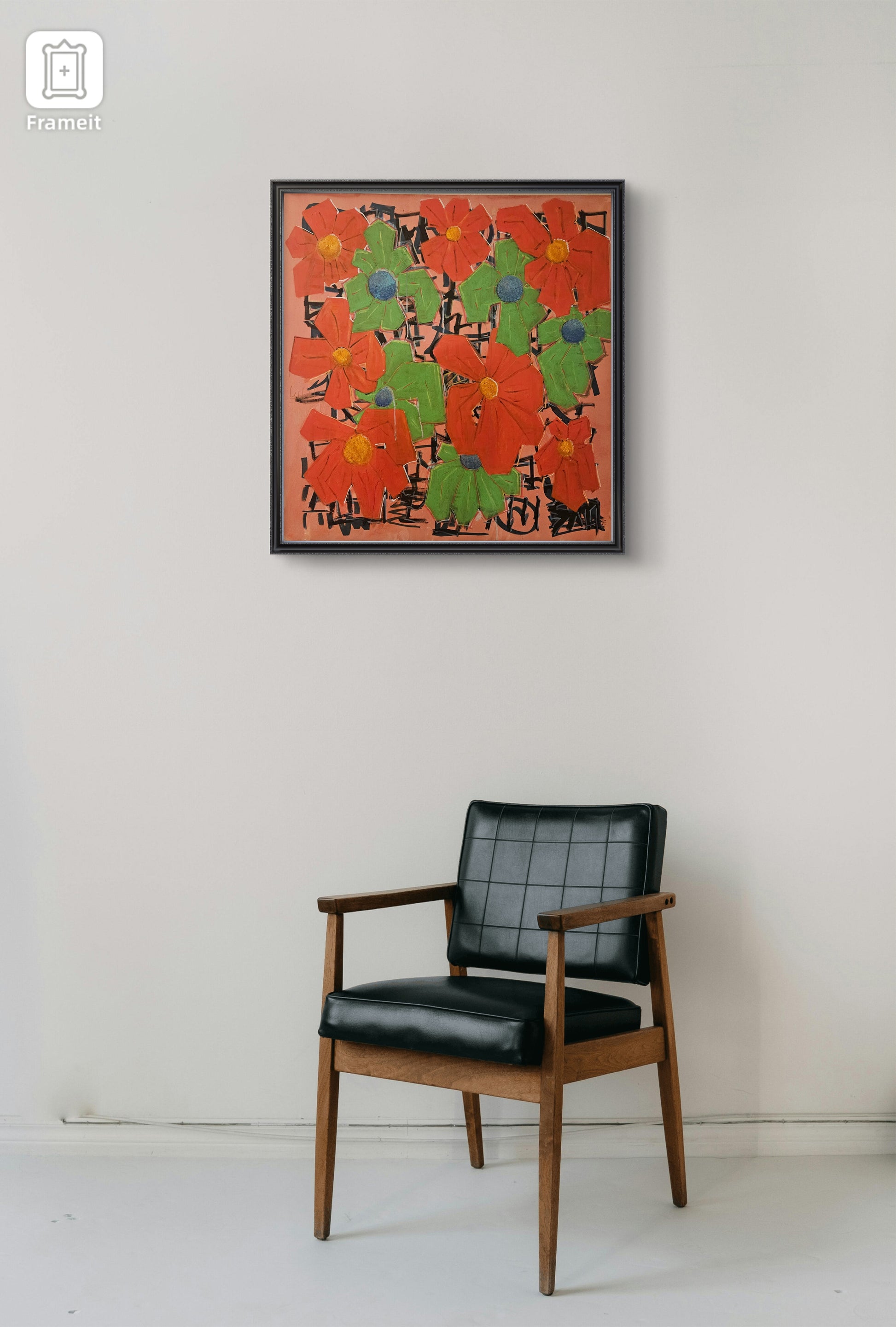 This piece explores the tension between beauty and toxicity. Bold red and green flowers with contrasting centers are set against a muted pink background, marked by black brushstrokes that suggest disruption or decay. Painted in oil on board, the composition emphasizes contrast, emotional intensity, and the idea that not all growth is safe.